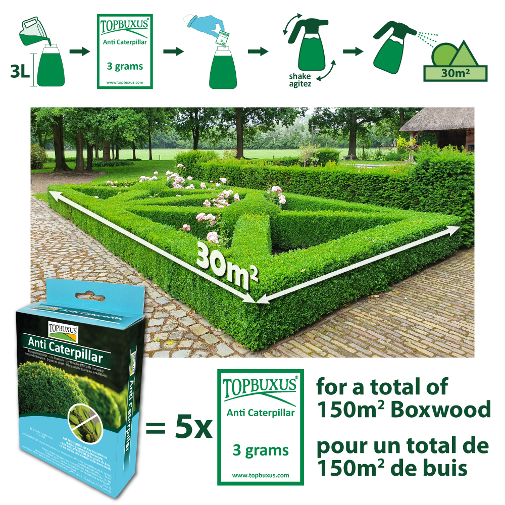 Anti Caterpillar is a biological treatment designed to target caterpillars such as the boxwood caterpillar. It helps bring infestations under control without damaging the plant.