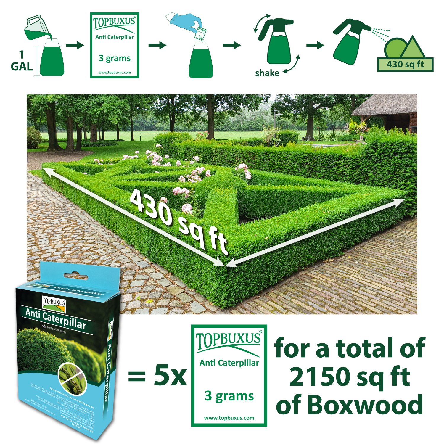 • Targeted biological solution for boxwood caterpillars